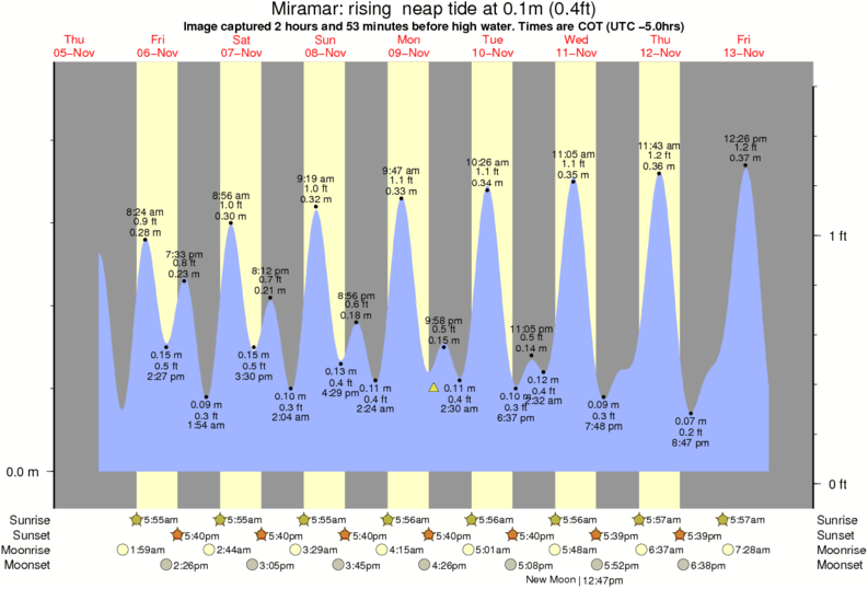 Image captured 2 hours and 53 minutes before high water (rising neap tide). Tide height was 0.1m (0.4 ft). Range 0.45m (1.5 ft). Toggle tide graph