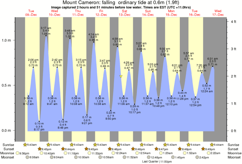 Forecast wind and swell just offshore from Mount Cameron around the time the photo was taken