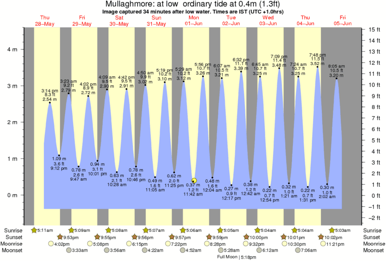 Image captured 34 minutes after low water (at low ordinary tide). Tide height was 0.4m (1.3 ft). Range 4.53m (14.9 ft). Toggle tide graph