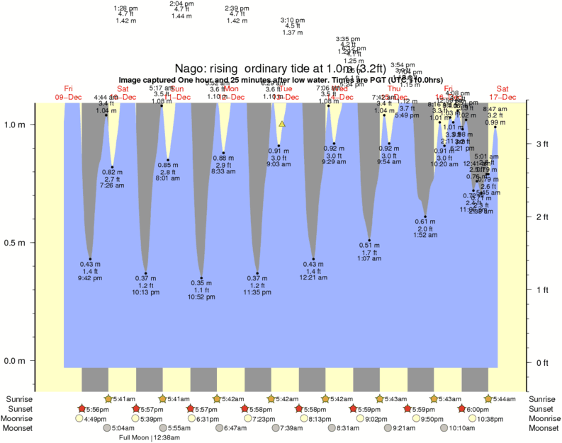 Forecast wind and swell just offshore from Nago around the time the photo was taken