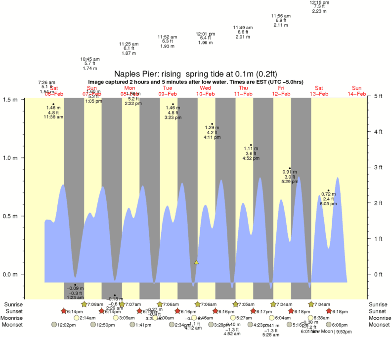 Forecast wind and swell just offshore from Naples Pier around the time the photo was taken