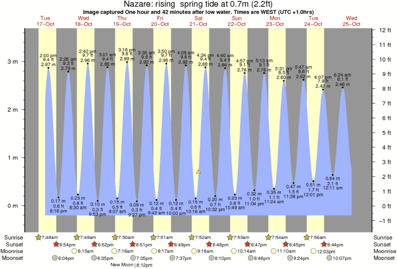 Forecast wind and swell just offshore from Nazare around the time the photo was taken