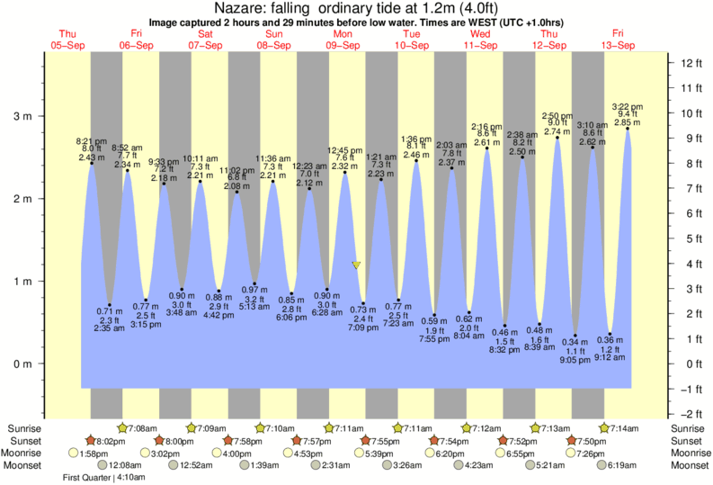 Forecast wind and swell just offshore from Nazare around the time the photo was taken