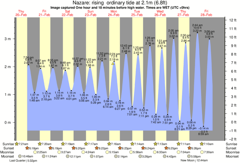 Forecast wind and swell just offshore from Nazare around the time the photo was taken
