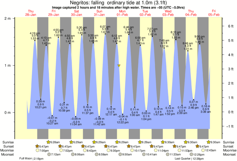 Image captured 2 hours and 18 minutes after high water (falling ordinary tide). Tide height was 1.0m (3.1 ft). Range 2.16m (7.1 ft). Toggle tide graph