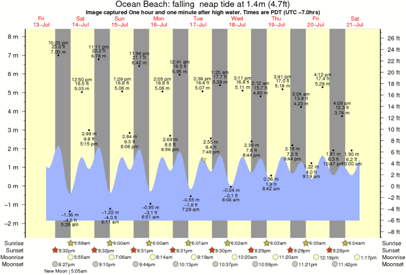 Image captured One hour and one minute after high water (falling neap tide). Tide height was 1.4m (4.7 ft). Range 9.33m (30.6 ft). Toggle tide graph