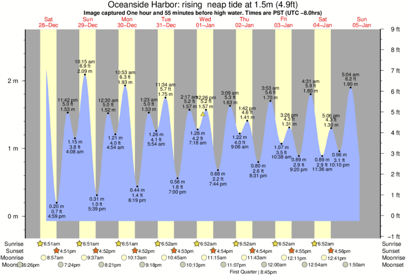 Forecast wind and swell just offshore from Oceanside Harbor around the time the photo was taken