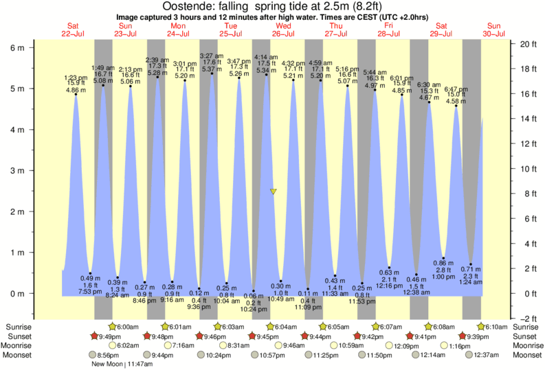 Image captured 2 hours and 15 minutes before high water (rising ordinary tide). Tide height was 3.1m (10.2 ft). Range 5.96m (19.6 ft). Toggle tide graph
