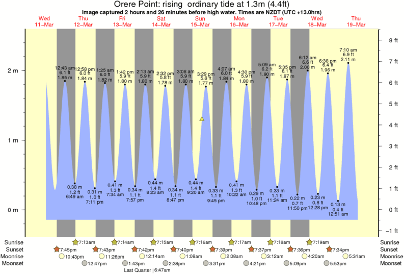 Image captured 2 hours and 26 minutes before high water (rising ordinary tide). Tide height was 1.3m (4.4 ft). Range 2.49m (8.2 ft). Toggle tide graph