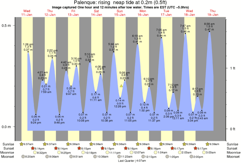 Image captured One hour and 12 minutes after low water (rising neap tide). Tide height was 0.2m (0.5 ft). Range 0.51m (1.7 ft). Toggle tide graph