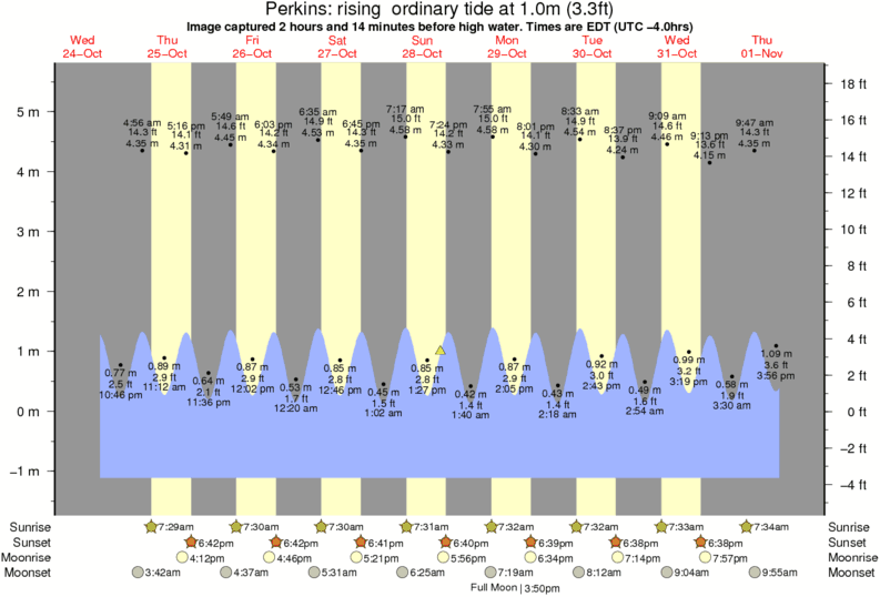 Image captured 2 hours and 14 minutes before high water (rising ordinary tide). Tide height was 1.0m (3.3 ft). Range 6.30m (20.7 ft). Toggle tide graph