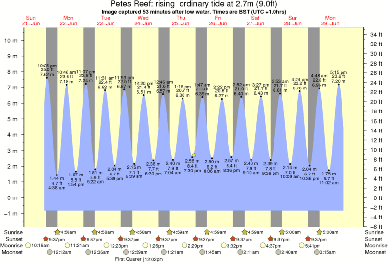 Image captured 53 minutes after low water (rising ordinary tide). Tide height was 2.7m (9.0 ft). Range 10.56m (34.6 ft). Toggle tide graph