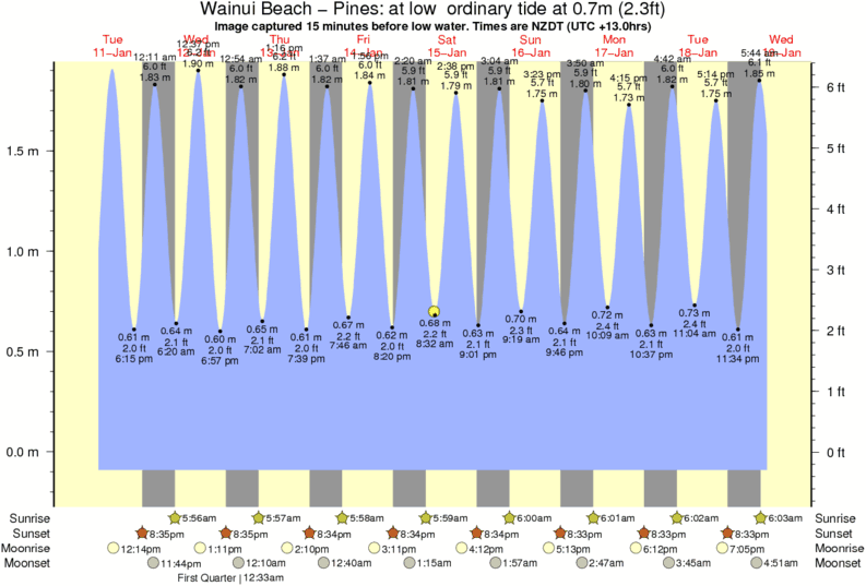 Forecast wind and swell just offshore from Wainui Beach - Pines around the time the photo was taken