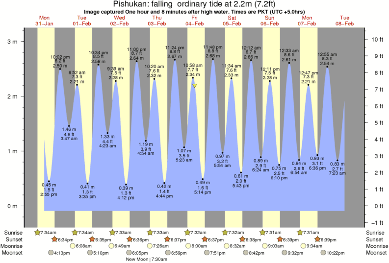 Image captured One hour and 8 minutes after high water (falling ordinary tide). Tide height was 2.2m (7.2 ft). Range 3.04m (10.0 ft). Toggle tide graph
