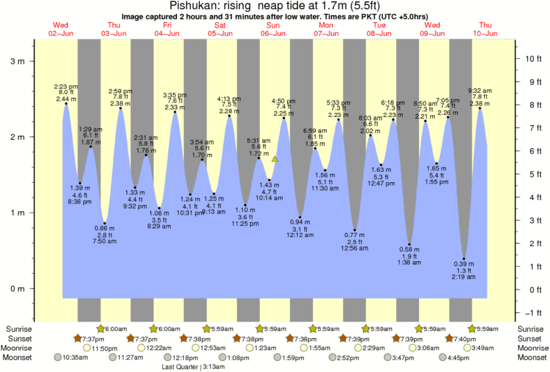 Image captured 2 hours and 31 minutes after low water (rising neap tide). Tide height was 1.7m (5.5 ft). Range 3.11m (10.2 ft). Toggle tide graph