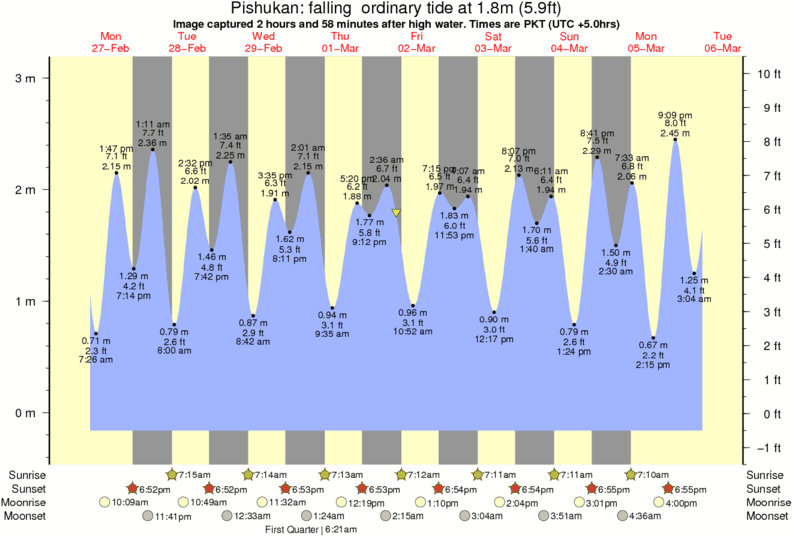 Image captured 2 hours and 58 minutes after high water (falling ordinary tide). Tide height was 1.8m (5.9 ft). Range 3.05m (10.0 ft). Toggle tide graph