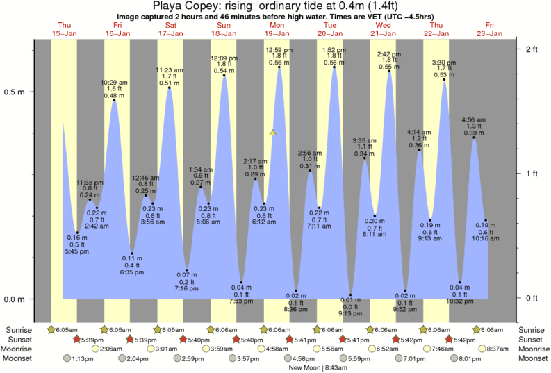 Forecast wind and swell just offshore from Playa Copey around the time the photo was taken