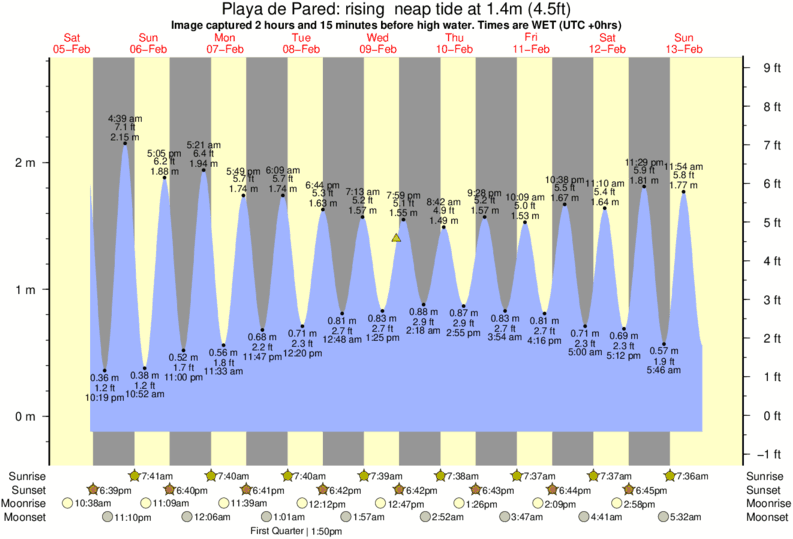 Forecast wind and swell just offshore from Playa de Pared around the time the photo was taken