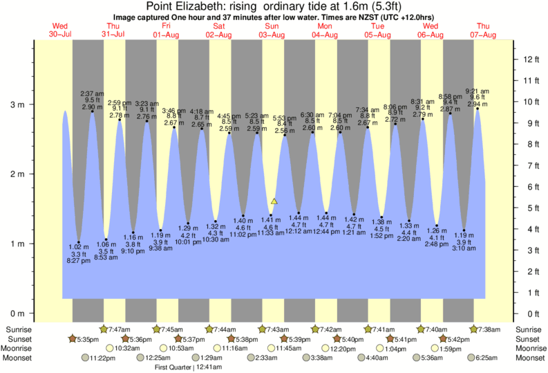 Image captured One hour and 37 minutes after low water (rising ordinary tide). Tide height was 1.6m (5.3 ft). Range 3.38m (11.1 ft). Toggle tide graph