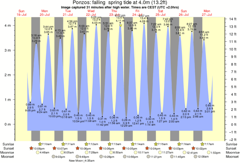 Image captured 31 minutes after high water (falling spring tide). Tide height was 4.0m (13.2 ft). Range 4.18m (13.7 ft). Toggle tide graph
