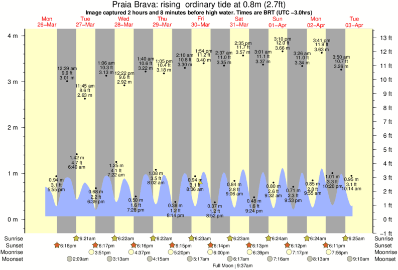 Forecast wind and swell just offshore from Praia Brava around the time the photo was taken