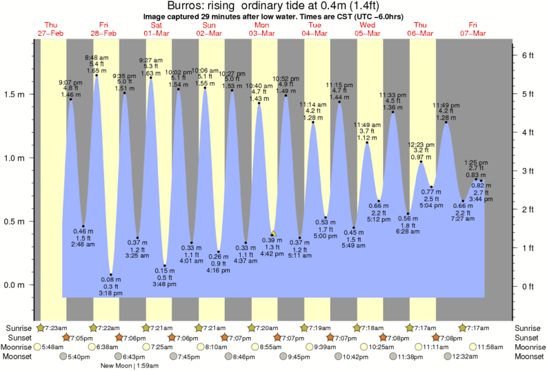 Image captured 29 minutes after low water (rising ordinary tide). Tide height was 0.4m (1.4 ft). Range 1.85m (6.1 ft). Toggle tide graph