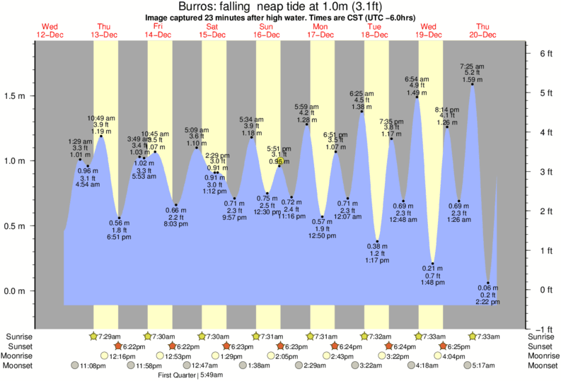 Image captured 23 minutes after high water (falling neap tide). Tide height was 1.0m (3.1 ft). Range 1.85m (6.1 ft). Toggle tide graph