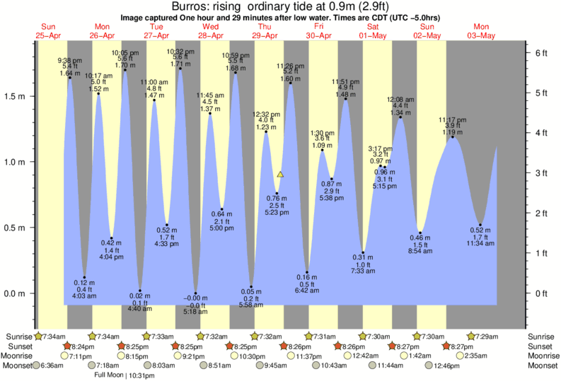 Image captured One hour and 29 minutes after low water (rising ordinary tide). Tide height was 0.9m (2.9 ft). Range 1.83m (6.0 ft). Toggle tide graph