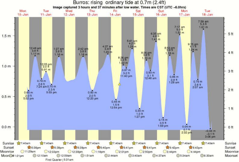 Image captured 3 hours and 37 minutes after low water (rising ordinary tide). Tide height was 0.7m (2.4 ft). Range 1.69m (5.5 ft). Toggle tide graph