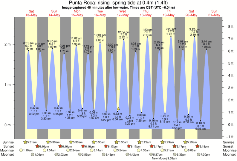 Forecast wind and swell just offshore from Punta Roca around the time the photo was taken