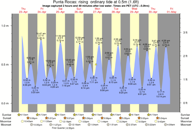 Forecast wind and swell just offshore from Punta Rocas around the time the photo was taken