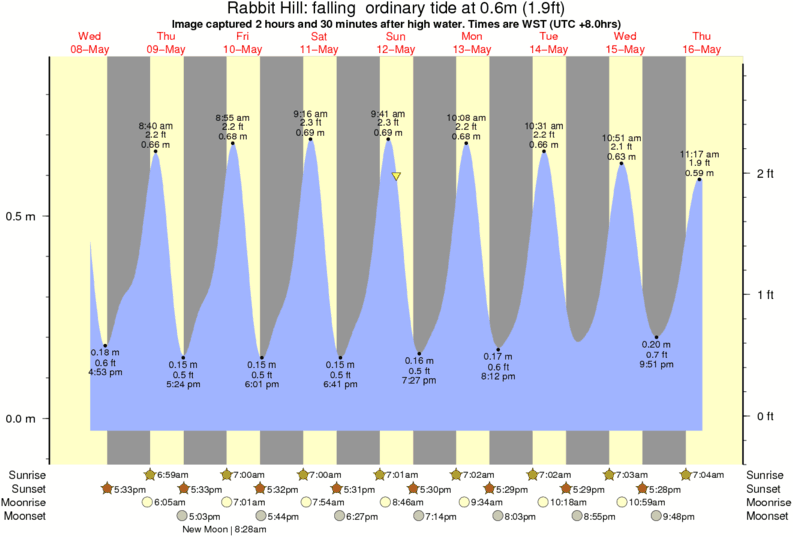 Image captured 2 hours and 30 minutes after high water (falling ordinary tide). Tide height was 0.6m (1.9 ft). Range 0.84m (2.8 ft). Toggle tide graph