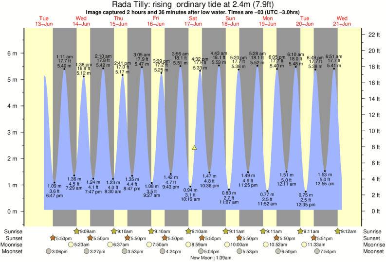 Image captured 2 hours and 36 minutes after low water (rising ordinary tide). Tide height was 2.4m (7.9 ft). Range 6.27m (20.6 ft). Toggle tide graph