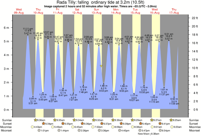 Image captured 2 hours and 52 minutes after high water (falling ordinary tide). Tide height was 3.2m (10.5 ft). Range 6.27m (20.6 ft). Toggle tide graph