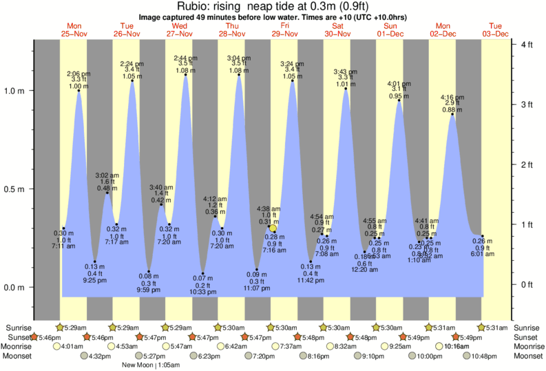 Image captured 49 minutes before low water (rising neap tide). Tide height was 0.3m (0.9 ft). Range 1.19m (3.9 ft). Toggle tide graph