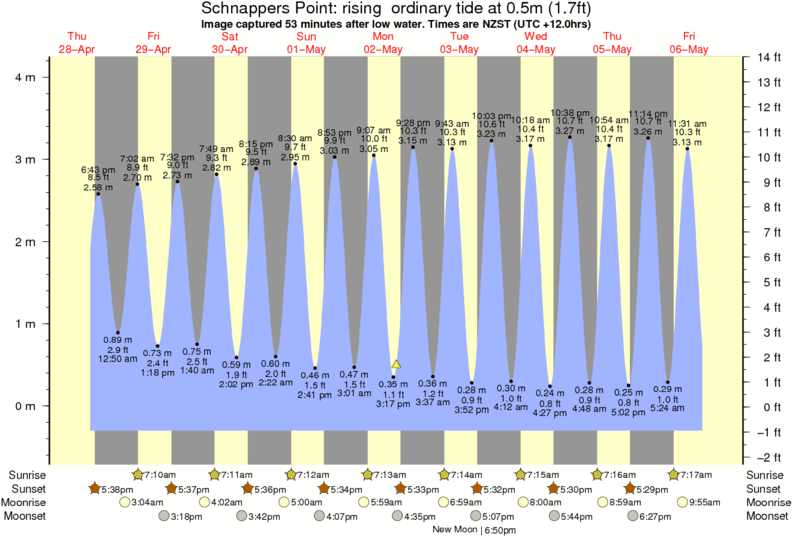 Image captured 53 minutes after low water (rising ordinary tide). Tide height was 0.5m (1.7 ft). Range 4.14m (13.6 ft). Toggle tide graph