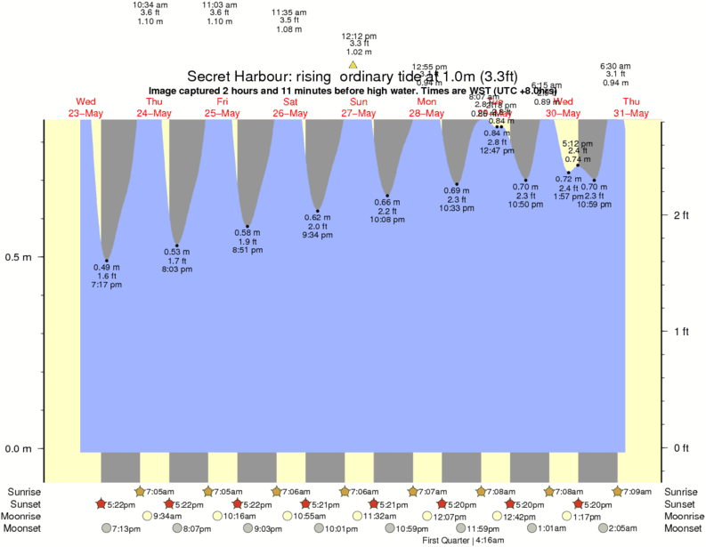 Image captured 2 hours and 11 minutes before high water (rising ordinary tide). Tide height was 1.0m (3.3 ft). Range 0.79m (2.6 ft). Toggle tide graph