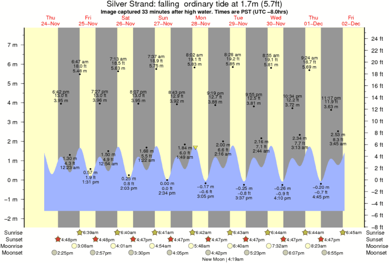 Forecast wind and swell just offshore from Silver Strand around the time the photo was taken