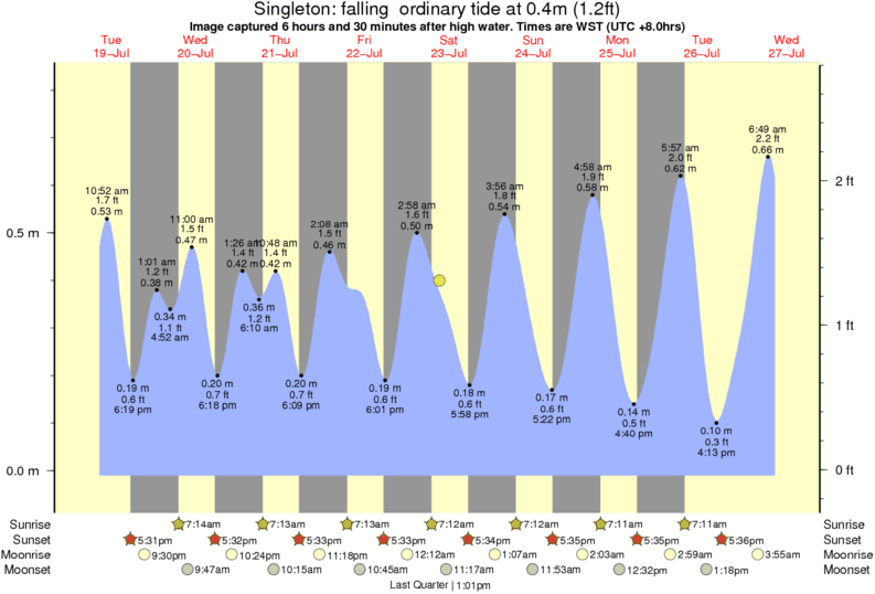 Image captured 6 hours and 30 minutes after high water (falling ordinary tide). Tide height was 0.4m (1.2 ft). Range 0.79m (2.6 ft). Toggle tide graph