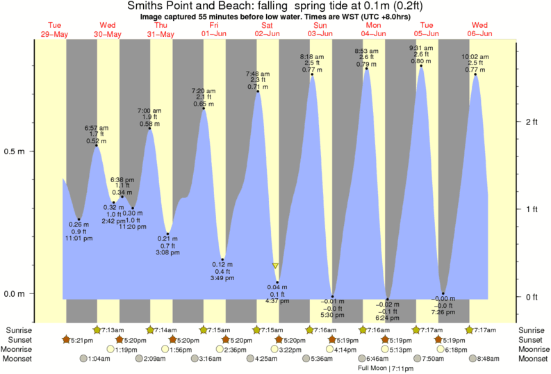 Image captured 55 minutes before low water (falling spring tide). Tide height was 0.1m (0.2 ft). Range 0.83m (2.7 ft). Toggle tide graph