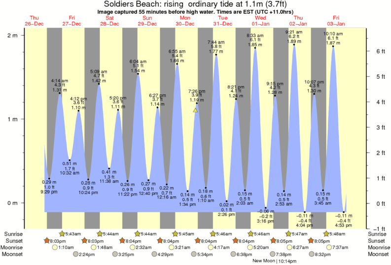 Forecast wind and swell just offshore from Soldiers Beach around the time the photo was taken