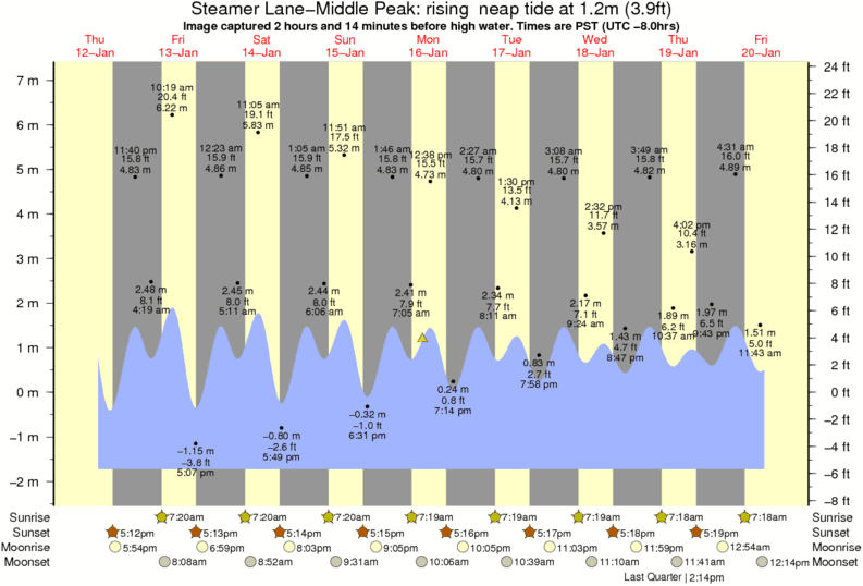 Image captured 2 hours and 14 minutes before high water (rising neap tide). Tide height was 1.2m (3.9 ft). Range 8.31m (27.3 ft). Toggle tide graph