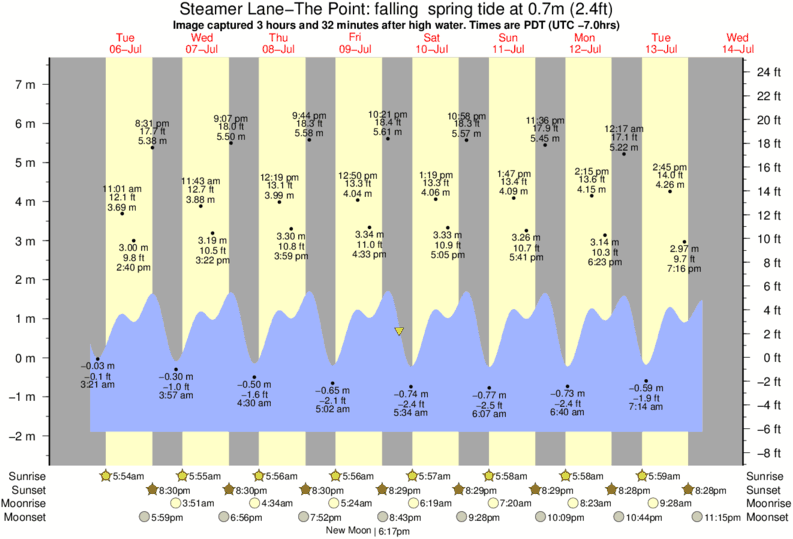 Image captured 3 hours and 32 minutes after high water (falling spring tide). Tide height was 0.7m (2.4 ft). Range 8.71m (28.6 ft). Toggle tide graph