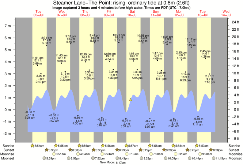 Image captured 3 hours and 4 minutes before high water (rising ordinary tide). Tide height was 0.8m (2.6 ft). Range 8.71m (28.6 ft). Toggle tide graph