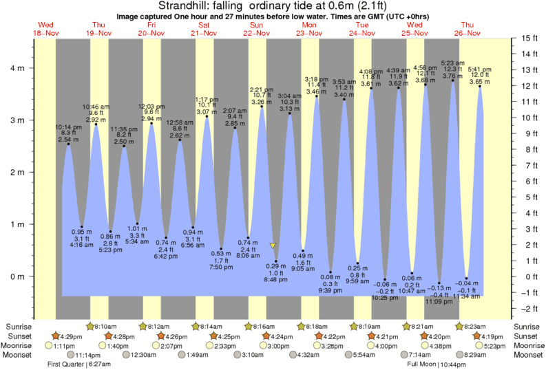 Image captured One hour and 27 minutes before low water (falling ordinary tide). Tide height was 0.6m (2.1 ft). Range 4.49m (14.7 ft). Toggle tide graph