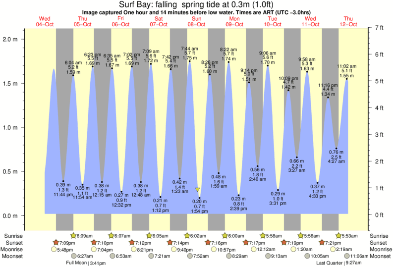 Image captured One hour and 13 minutes before low water (falling spring tide). Tide height was 0.3m (1.0 ft). Range 1.91m (6.3 ft). Toggle tide graph