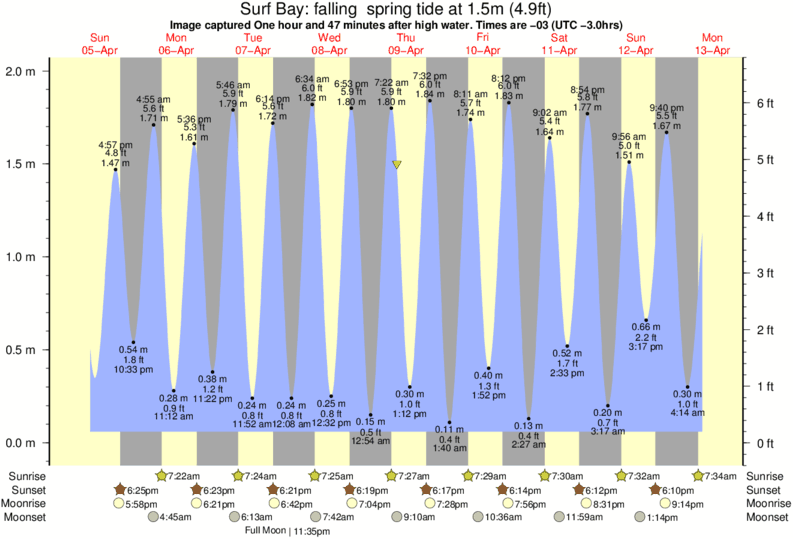 Image captured One hour and 47 minutes after high water (falling spring tide). Tide height was 1.5m (4.9 ft). Range 1.83m (6.0 ft). Toggle tide graph