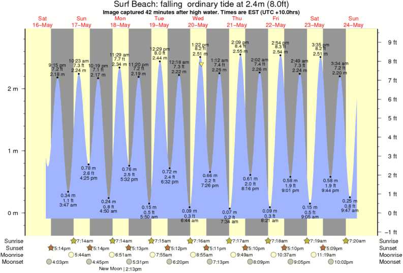 Image captured 42 minutes after high water (falling ordinary tide). Tide height was 2.4m (8.0 ft). Range 2.78m (9.1 ft). Toggle tide graph
