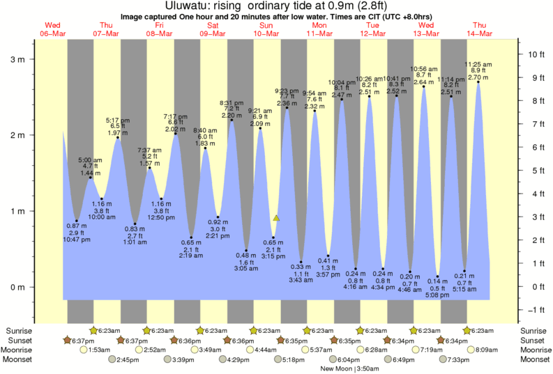 Image captured One hour and 20 minutes after low water (rising ordinary tide). Tide height was 0.9m (2.8 ft). Range 3.12m (10.2 ft). Toggle tide graph