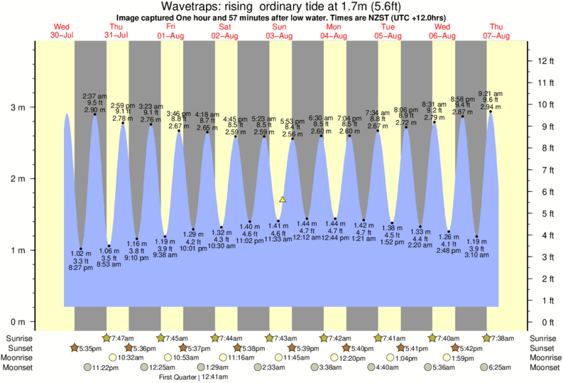 Image captured One hour and 57 minutes after low water (rising ordinary tide). Tide height was 1.7m (5.6 ft). Range 3.38m (11.1 ft). Toggle tide graph